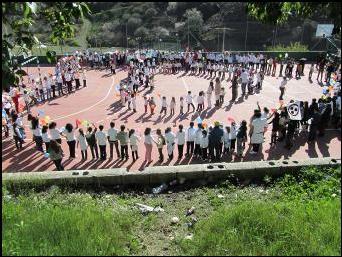 Los Colegios de El Borge, Almachar y Cútar, consiguen recaudar 450 euros, con la venta de unos bolígrafos solidarios, los fondos fueron entregados a AHIMSA, y se destinarán al proyecto de construcción de Escuelas en el Extremo Norte de Camerún. El encuentro de este año es la tercera edición contando con la participación de mas de 250 niños y niñas, se realizaron entre otras actividades, juegos cooperativos, lectura de poesías por la paz, una orquesta en la que participaron alumnos y profesores y el intercambio de corazones, entre otras actividades. En esta edición el colegio Antonio Gala de El Borge, fue el anfitrión. Os felicitamos por vuestro trabajo en favor de quienes no tiene un centro escolar tan “GUAY” como el vuestro. |