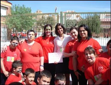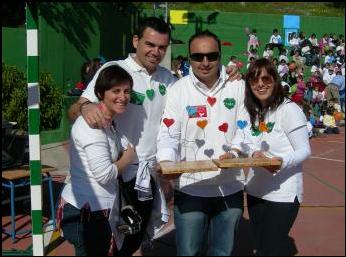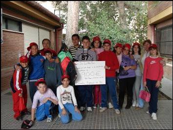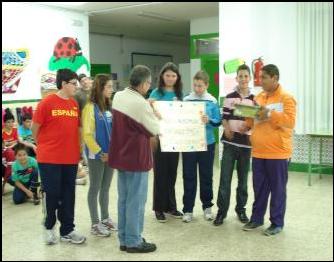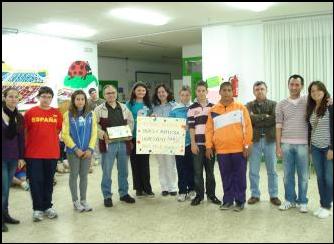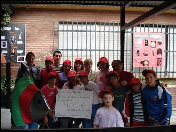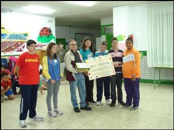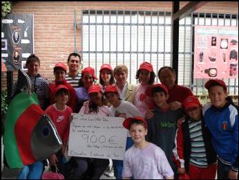 Momento de la entrega de los 940 EUROS, recaudados con motivo del MERCADILLO SOLIDARIO, organizado por los/as alumnos/as y profesores/as del C.E.I.P, J. Luís Villar Palasí, más conocido como Colegio “Zona Norte” de Vélez-Málaga. Este dinero se destinará a la compra de una CAMELLA, para los refugiados saharauis, dentro del programa de AHIMSA de apoyo a las familias, mediante la financiación de proyectos que le posibilite el desarrollo económico familiar. ¡¡ OS FELICITAMOS POR VUESTRO TRABAJO !!. Abril de 2011 |